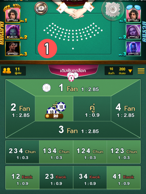 3. กำถั่วออนไลน์ (Fan Tan) :